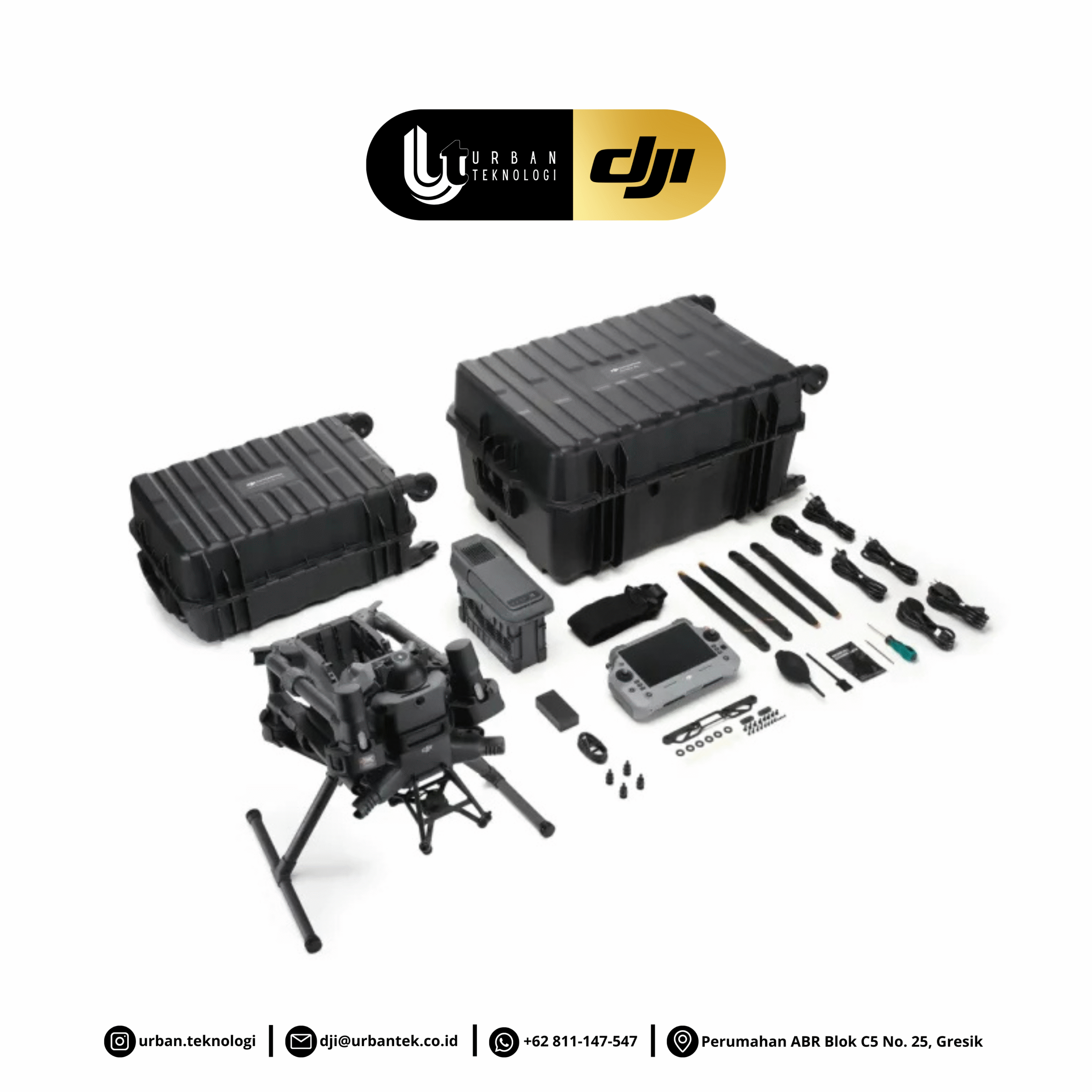 - Drone profesional, battery dan accessories.